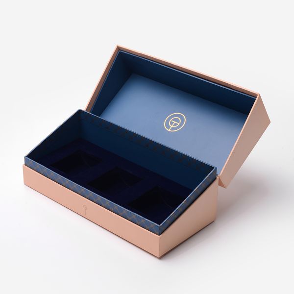 Light pink printing, gilded logo, and EVA fixed products on the inner tray.